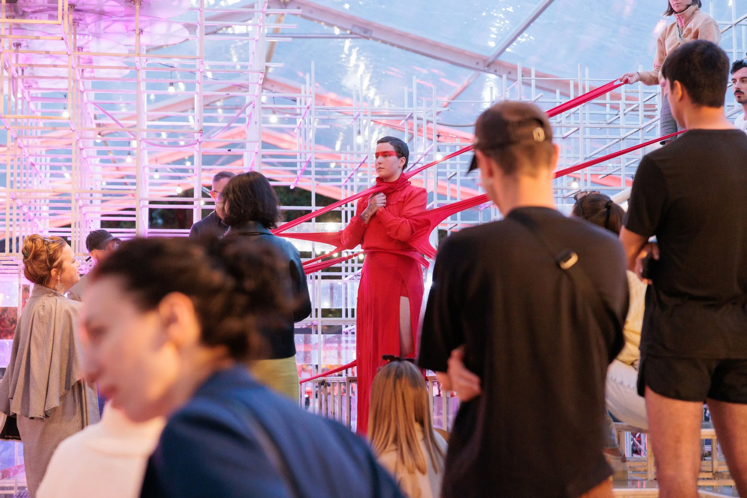 This immersive performance sought to question modes of representation and reception across different audiences. By placing the female figure at the center of its reflection, the work explored both the origin of the world and the ways in which the female body is perceived, interpreted, and symbolically charged. Through a sensitive and performative approach, it opened a space for reflection on the gaze, presence, and the many meanings projected onto the feminine.